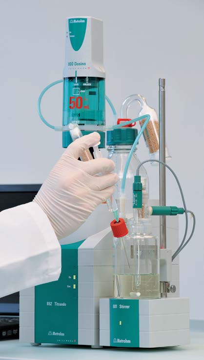 主要功能及特點 851型庫侖法卡氏水分滴定儀集成了多項瑞士萬通的先進技術,是庫侖法卡氏水分滴定儀的代表作。基于無死體積滴定管和多項智能化技術,是高度自動化、智能化實驗室的明智之選。 852型容量法&庫侖法卡氏水分測定儀的突出特點是兼具庫侖法/容量法兩種卡氏水分滴定方法。當您要分析含水量范圍很寬的樣品時,852精湛一代TM就是您明智的選擇。采用tiamoTM軟件控制,可以同時進行兩種測定。   水分測定標準舉例 GB/T 11133-2015? ? ? ?石油產品、潤滑油和添加劑中水含量的測定 卡爾費休庫侖滴定法 GB/T 11146-2009? ? ? 原油水含量測定 卡爾·費休庫侖滴定法 GB/T 6283-2008? ? ? 化工產品中水分含量的測定 卡爾·費休法(通用方法) GB/T 1600-2001? ? ? ?農藥水分測定方法 GB/T 1746-1979? ? ? ? 涂料水分測定法 GB 5009.3-2016? ? ? ? 食品國家標準 食品中水分的測定 SH/T 0246-1992? ? ? ?輕質石油產品中水含量測定法(電量法) 《中國藥典》 0832??水分測定法   溴價、溴指數測定標準舉例 庫侖法溴價、溴指數測定 SH/T 0630? 石油產品溴價 、溴指數測定法(電量法) ASTM D1492? Standard Test Method for BromineIndex of Aromatic Hydrocarbons by Coulometric? Titration 容量法溴價、溴指數測定 GB/T 1815? ?苯類產品溴價的測定 ASTM D1159? Test Method for Bromine Numbers of Petroleum Distillates and Commercial Aliphatic Olefins by Electrometric Titration