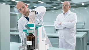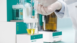 自動化的水分測定可節省溶劑。OMNIS 奧秘一代機器人樣品處理器使處理每個樣品的溶劑消耗量僅為12mL。