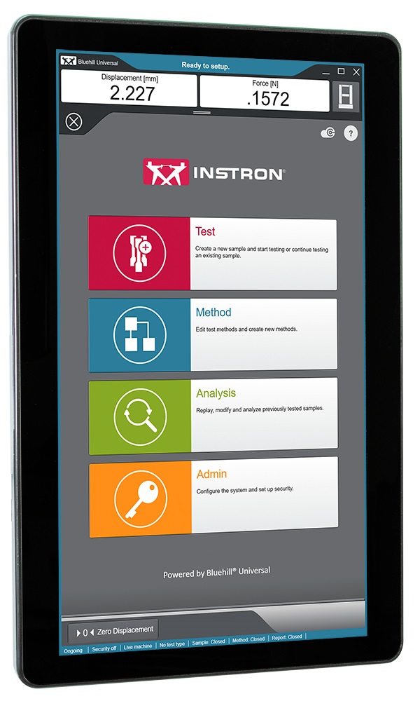 Bluehill Universal 基于優化觸控操作而開發。操控面板具有較大的觸控點,為用戶提供更便捷和更智能的體驗。易于理解的圖標和操作步驟,簡單的培訓,即可在幾秒鐘內開始試驗。