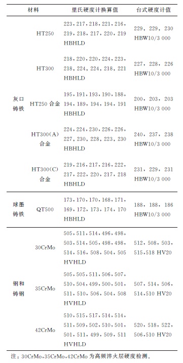 表4 不同材料硬度檢測結果及換算值對比