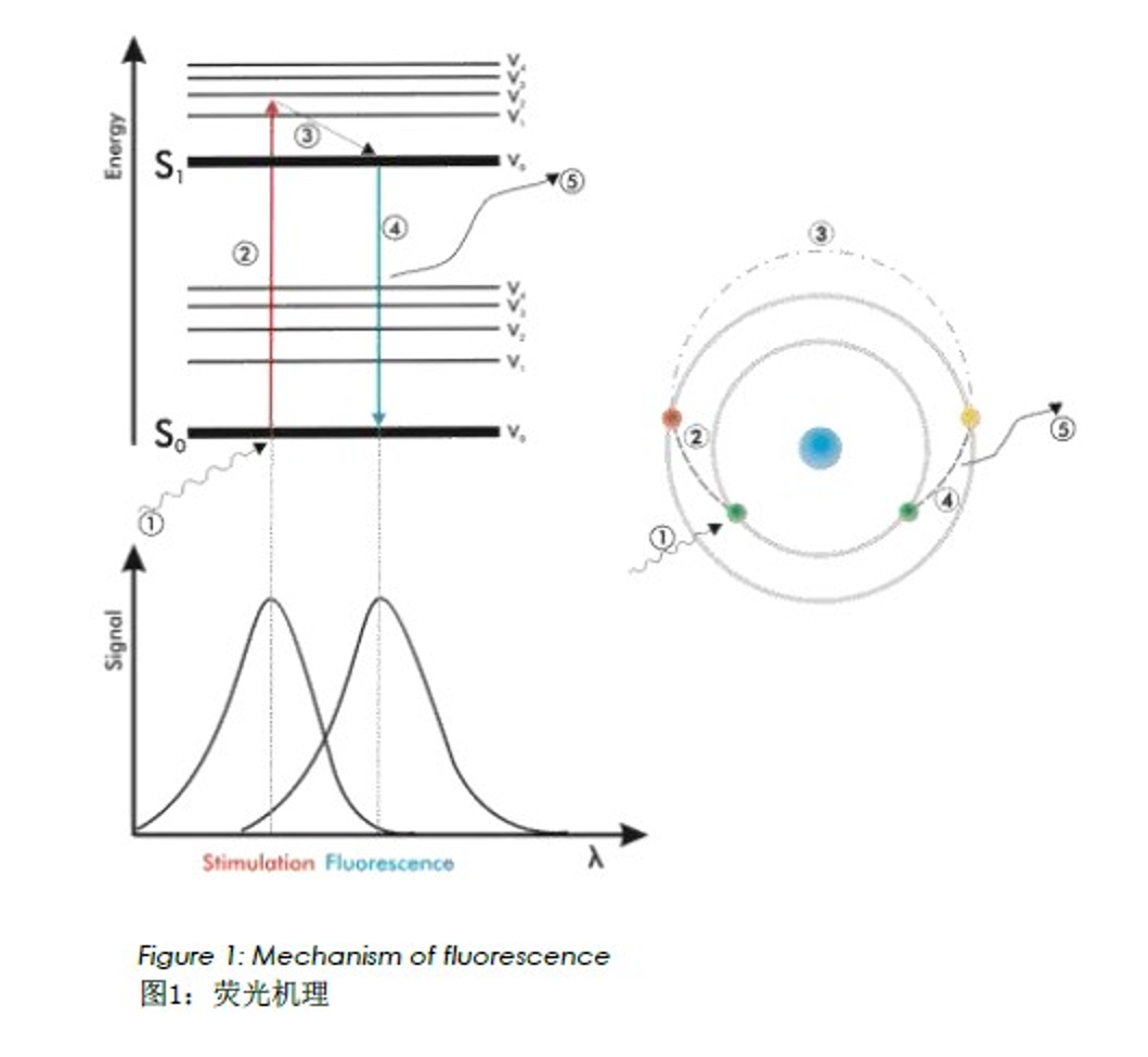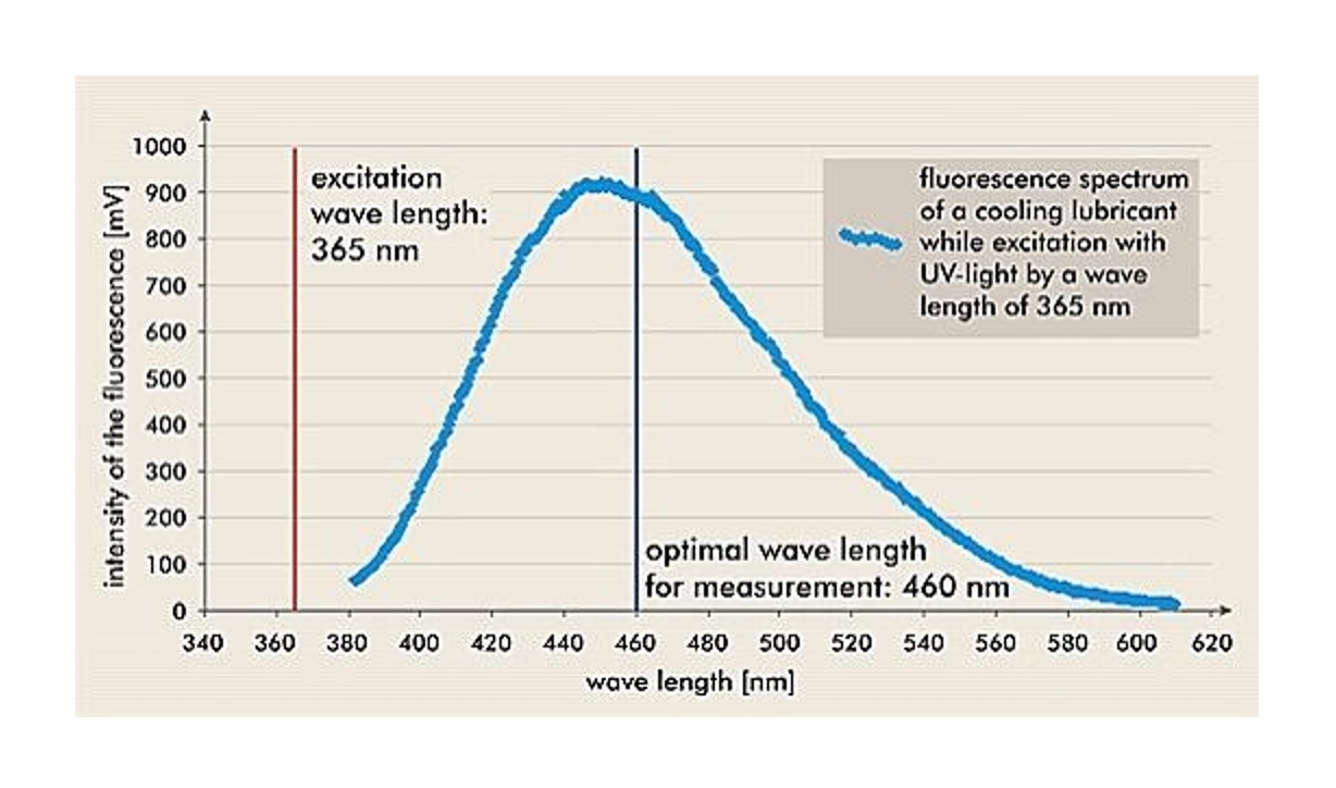 通俗來講,紫外線激發熒光,當污染物電子吸收了光子后能量提高,形成電子云層躍遷,由低能級躍遷到高能級,但在高能級的狀態是不穩定的,它回到起初的能級,并釋放出能量。由于部分能量轉化為熱量消耗了,所以發射的光子能量降低,波長變長。