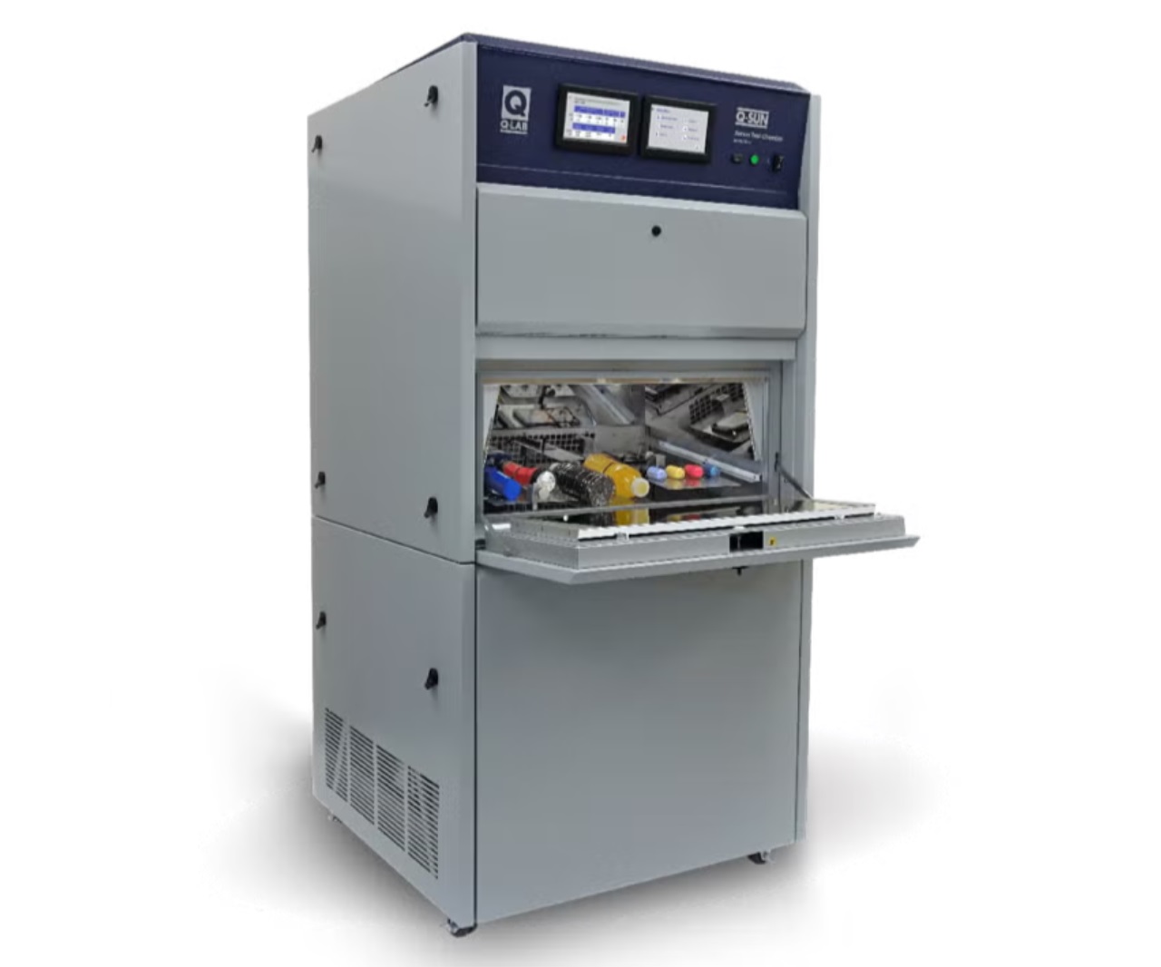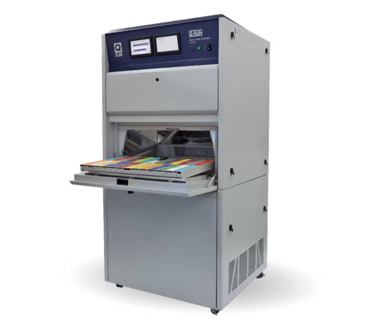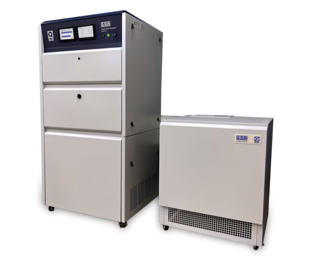 對于某些室內(nèi)產(chǎn)品(例如藥品和化妝品),需要較低的測試溫度以防止非自然降解。Xe-3試驗(yàn)箱可選配制冷機(jī),以在測試此類熱敏材料時降低溫度,例如 ICH指南 協(xié)議。使用制冷機(jī),Q-SUN Xe-3氙燈老化試驗(yàn)箱可以在黑板溫度低至 31 °C 和 50%相對濕度下運(yùn)行,具體取決于傳感器類型、輻照度水平、濾光片類型、燈管使用年限以及室溫和濕度。Xe-3 制冷機(jī)設(shè)計為與全尺寸 Xe-3試驗(yàn)箱并??排放置,并配有輪子,便于重新定位。